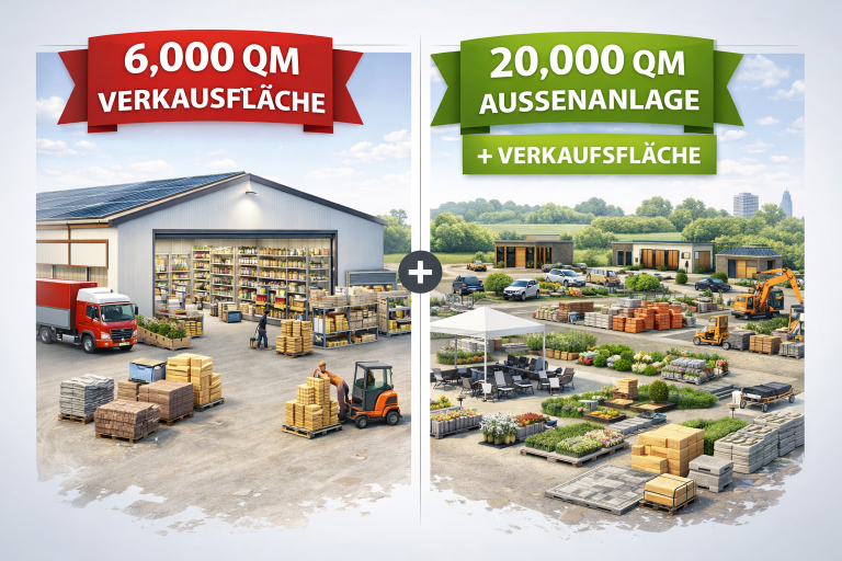 Die 6.000 m² große Halle wird als modernes Logistik- und Produktionszentrum genutzt. Die 20.000 m² befestigte Außenfläche eignet sich ideal für LKW-Zufahrten, Container-Stellplätze, Umschlagflächen oder Mitarbeiterparkplätze.